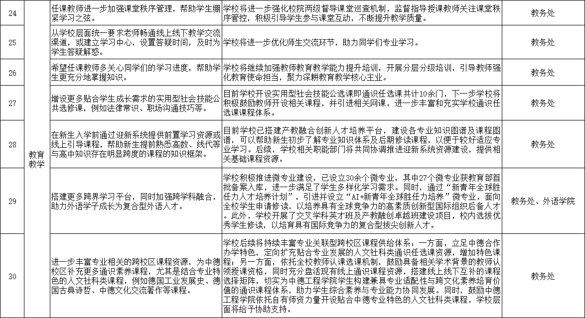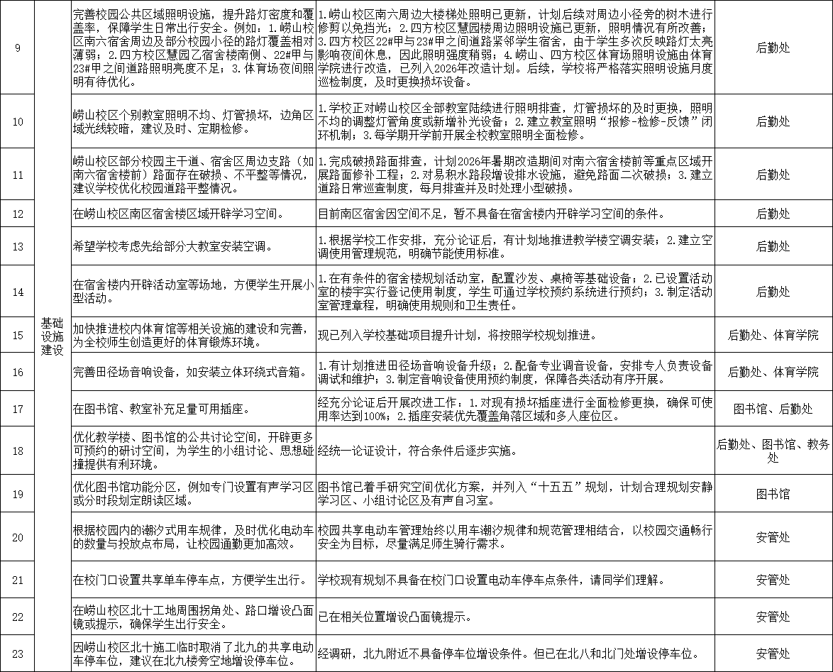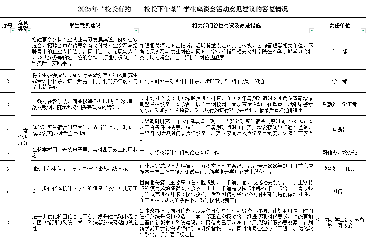关于对2025年“校长有约——校长下午茶”学生座谈会上意见建议的答复