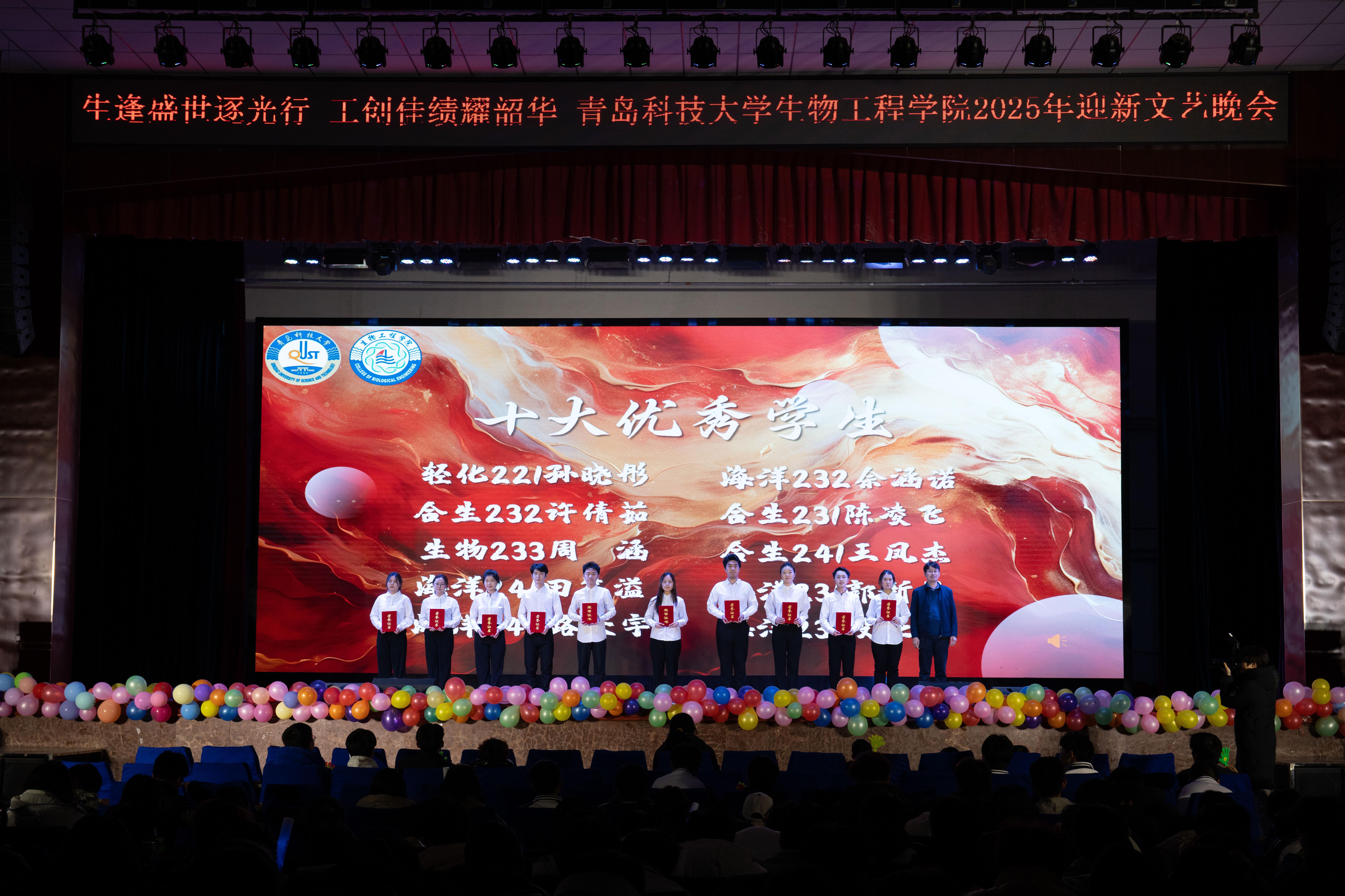 晚会中间开展学风建设表彰,对学院“健康跑达人”“文明宿舍”“十大优秀学生”等荣誉称号获得者进行颁奖。生工学子以拼搏之姿诠释运动精神;以细节彰显文明风尚;以实干书写青春华章,尽显新时代学子风采。