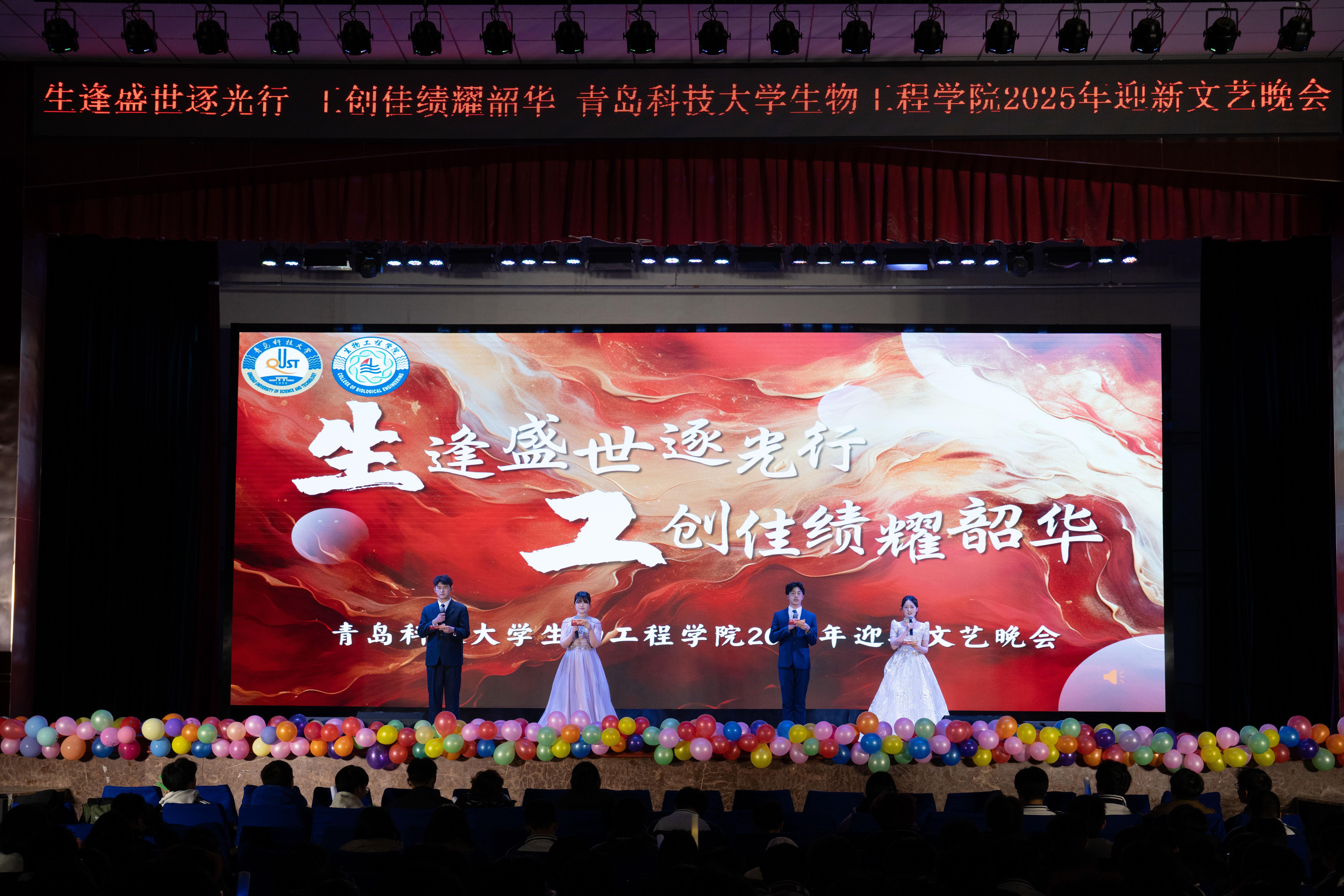 为激励广大生工学生勇担时代重任,传承青春力量,近日,生物工程学院在四方校区西礼堂举行“生逢盛世逐光行,工创佳绩耀韶华”2025年迎新晚会。生物工程学院院长顾玉超、党委副书记兼副院长刘浩、洛阳路街道周口路社区党委书记李静、学工办主任秦洪庆、全体辅导员和2024级、2025级全体学生参加活动。