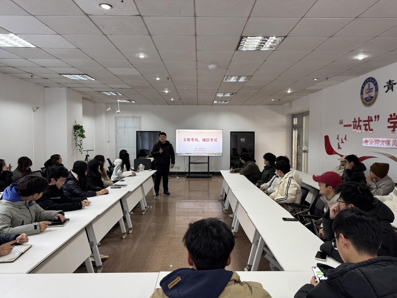 为做好学生干部的考前诚信教育,培养学生道德自律和诚实守信意识,促进优良学风的形成。12月11日上午,信息学院在一站式学生社区开展诚信考试主题教育活动,辅导员郝昱猛及学生干部代表参加此次活动。