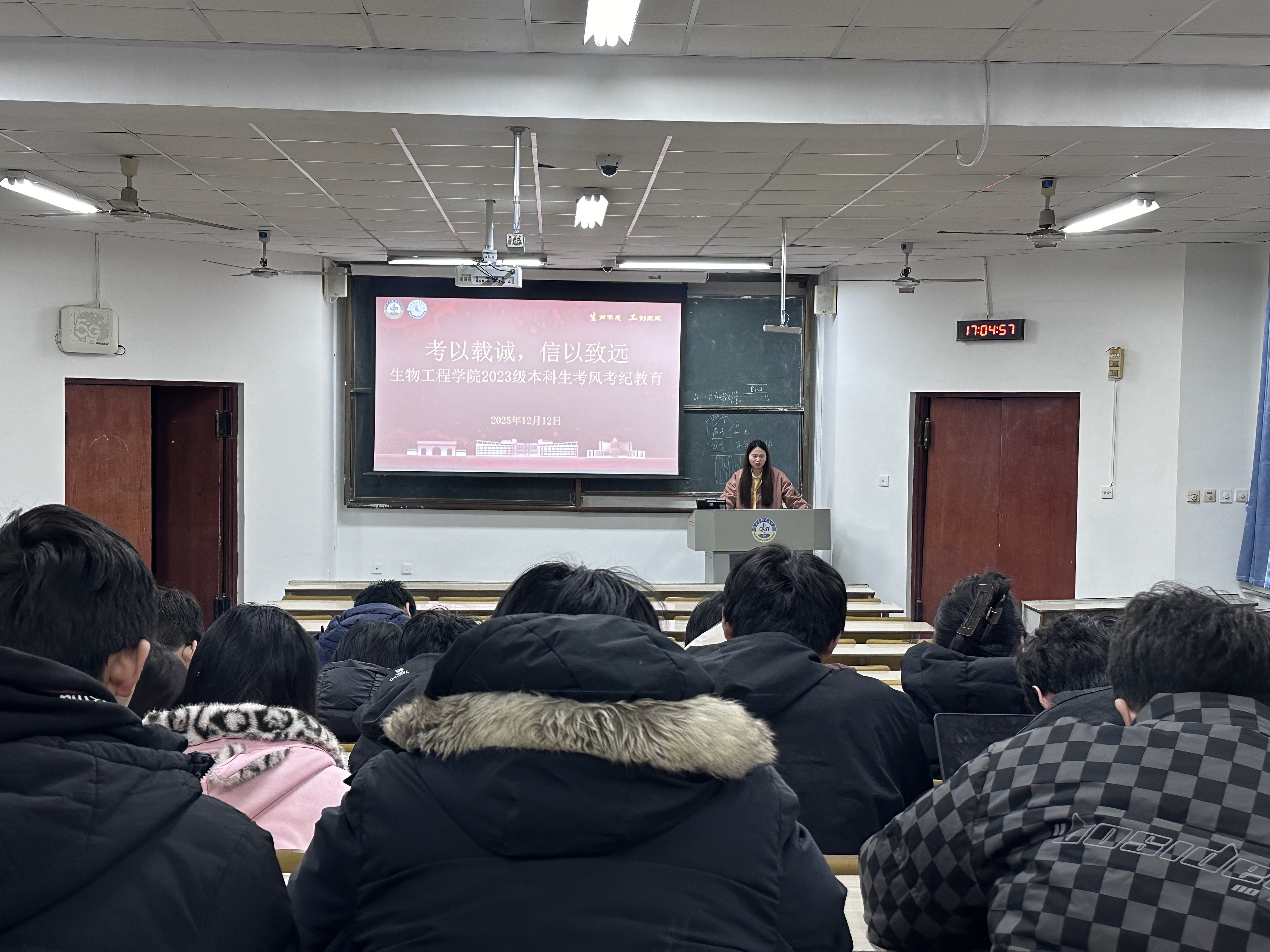 为强化学生诚信意识与纪律观念,营造风清气正的考试环境,12月12日,生物工程学院2024级、2023级相继召开考风考纪大会。大会由辅导员刘金岭、郭颖分别主持,2024级、2023级学生参加会议。