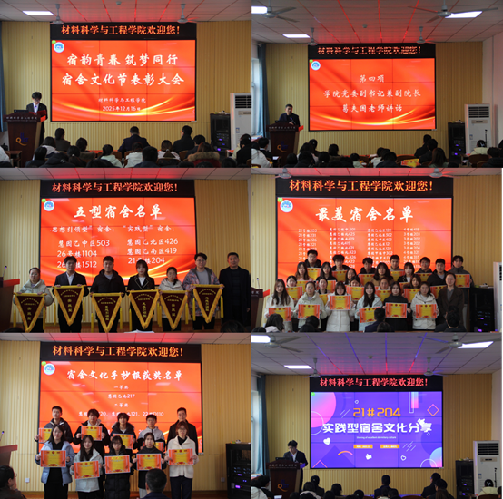 为深入贯彻落实《青岛科技大学关于新时代进一步加强和改进学生公寓管理和服务工作的实施意见》工作要求,深化宿舍育人功能,培育积极向上、团建和谐的宿舍文化,材料学院自11月启动“宿韵青春 筑梦同行”宿舍文化节建设系列活动,并于12月16日下午在学院楼101教室举行宿舍建设表彰大会。学院党委副书记兼副院长葛夫国、全体辅导员老师、各年级学生宿舍代表参加活动。