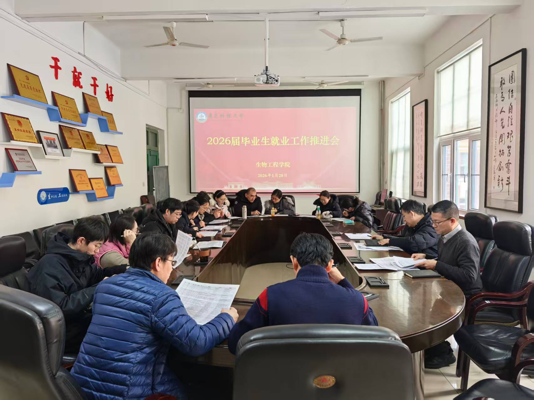 为扎实推进2026届毕业生就业工作,精准掌握毕业生就业进展,1月20日,生物工程学院在四方校区一政213召开2026届毕业生就业工作推进会。学院领导班子成员、各教研室主任及2022级班主任、辅导员参加会议,会议由党委副书记兼副院长刘浩主持。