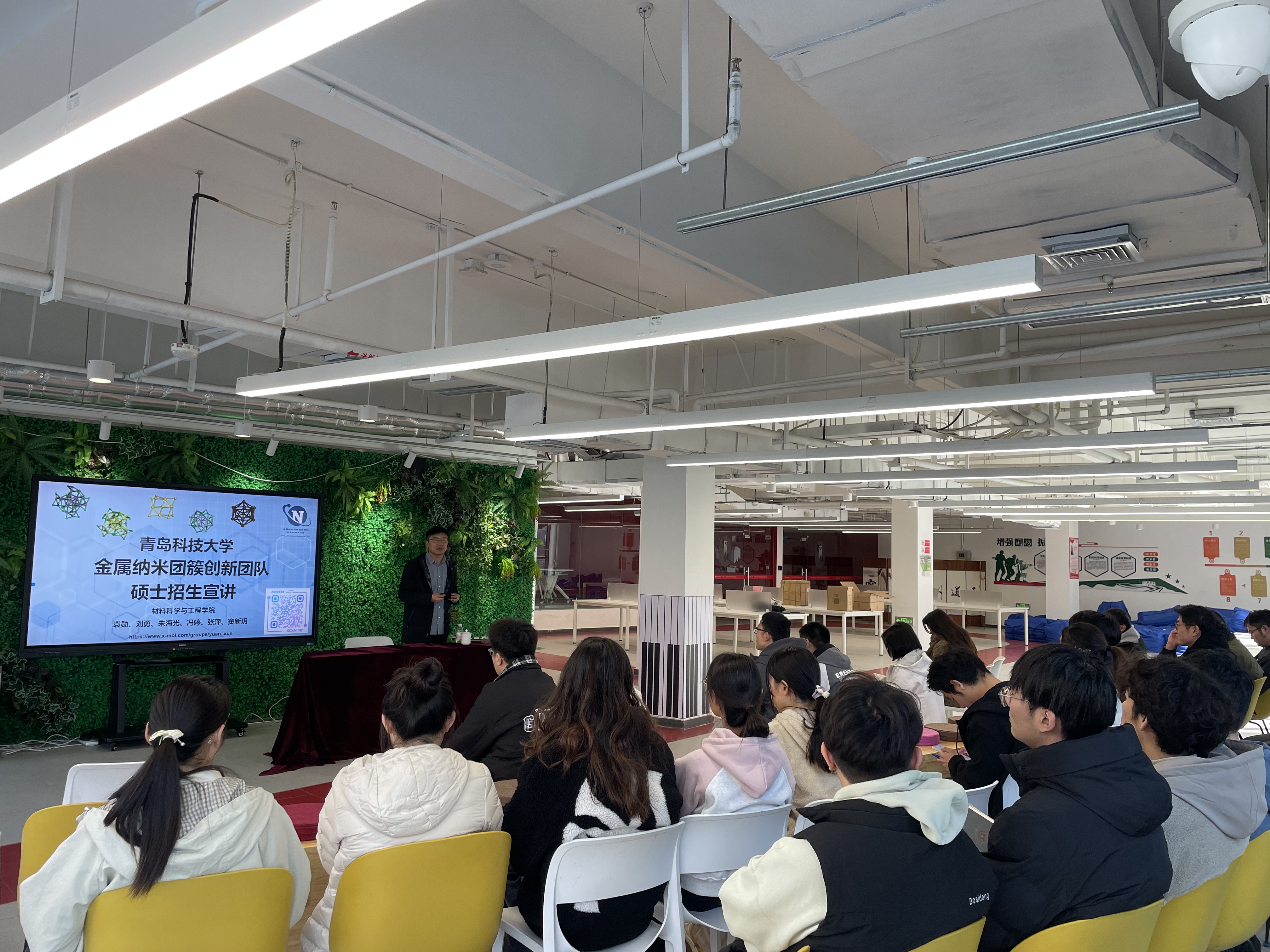 活动首先以“研究生招考及选择导师信息分享”为题,袁勋结合自身丰富的科研经历与人才培养经验,为同学们系统梳理了攻读硕士、博士学位的深造路径,详细解读了当前研究生招考的最新政策与趋势,强调了科学选择报考院校、专业方向以及导师团队的关键性。随后,深入介绍了其团队在“超小金属纳米团簇”这一前沿领域的研究工作,生动展示了基础研究从理论创新到能源催化、生物医学等领域的应用潜力,让同学们深切感受到了科学探索的乐趣与价值。在交流互动环节,同学们围绕如何准备研究生复试、如何有效联系心仪导师、如何平衡课程学习与科研训练等实际问题进行深入交流讨论。