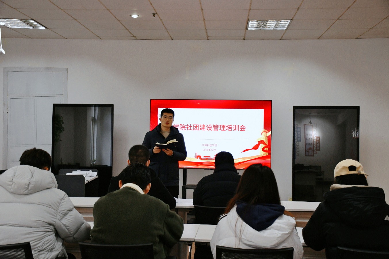 为进一步规范学生社团管理,提升社团骨干综合能力,12月30日,中德科技学院召开社团建设管理培训会。学生社团业务指导教师、负责人、骨干成员代表参加会议,学院专职团干部连浩杰主持会议。