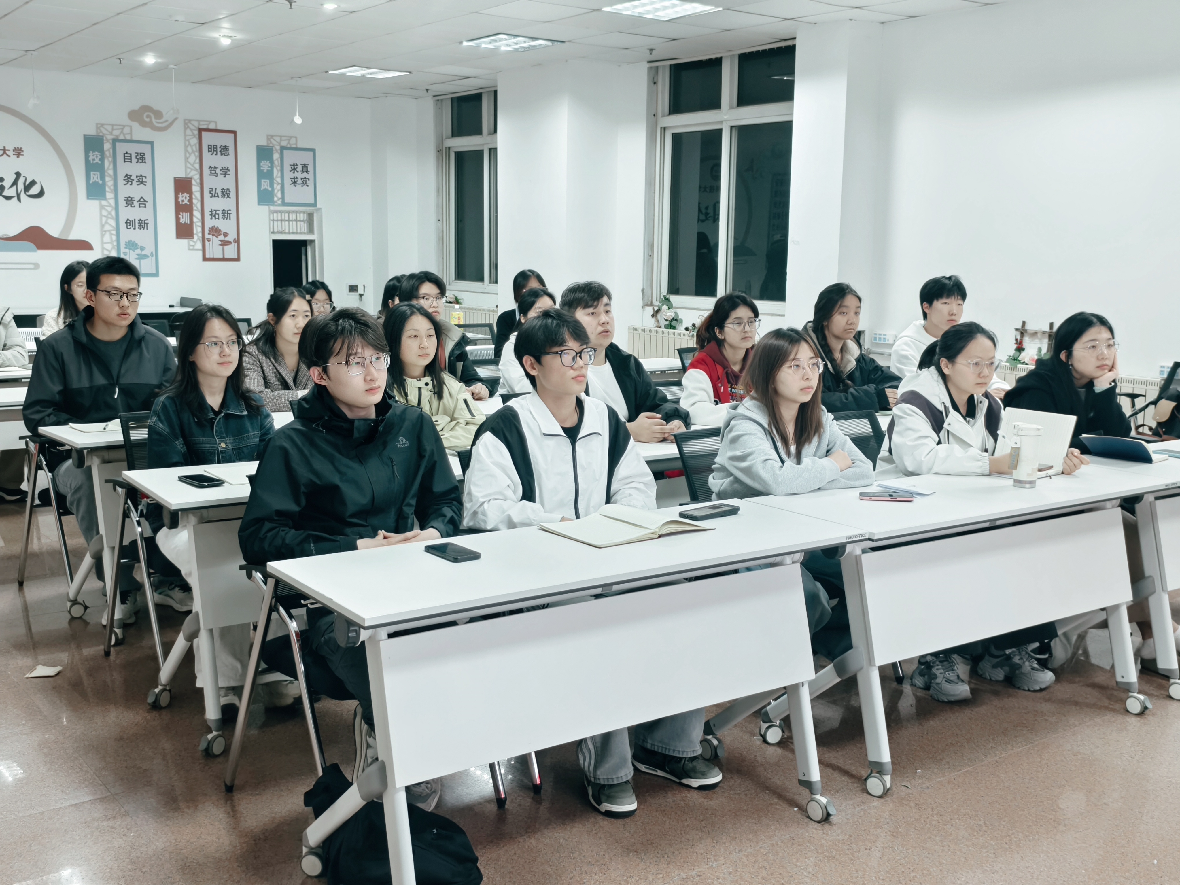 本次学习系统阐释了“以人民为中心”的时代内涵,带领同学们深刻领会“江山就是人民,人民就是江山”的核心要义,明确将个人发展融入国家大局的理论逻辑与实践路径。同时,主讲人围绕新时代青年践行党的宗旨、服务中国式现代化建设的实践要求,结合领袖垂范、时代楷模事迹以及当代青年在志愿服务、科技报国、社会实践中的生动案例,引导同学们将“人民至上”理念内化于心、外化于行,以扎实学识和过硬本领服务社会发展。