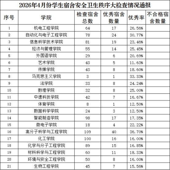 2026年4月份学生宿舍安全卫生秩序大检查情况通报