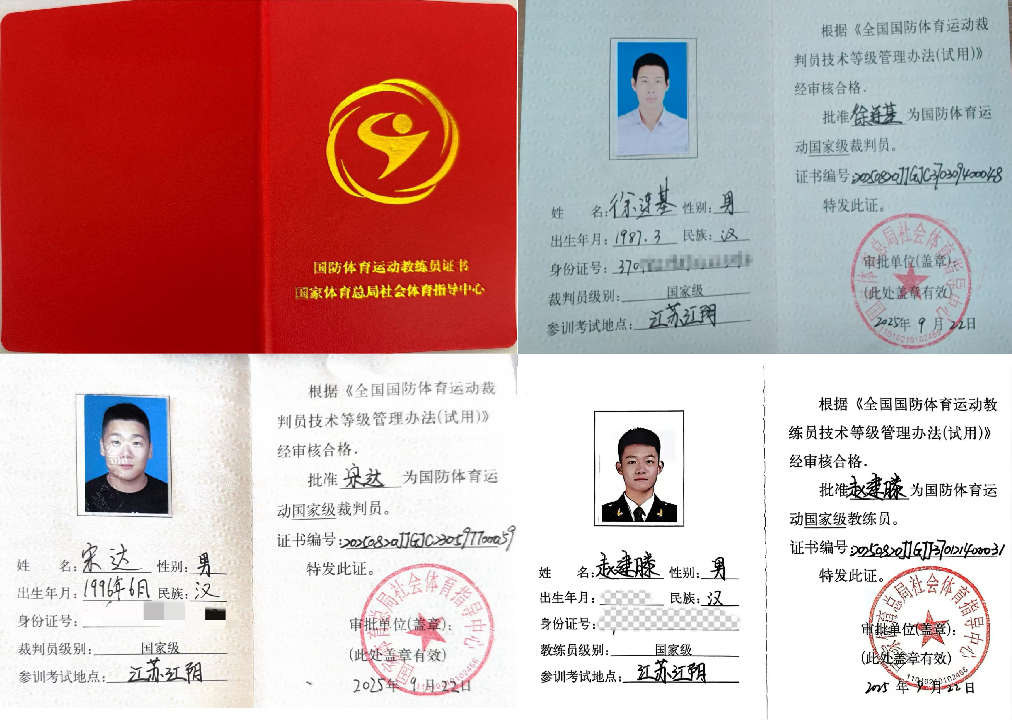 日前,国家体育总局社会体育指导中心颁发了首批全国国防体育国家级教练员、裁判员证书。我校教师赵建滕获颁首批全国国防体育国家级教练员证书,我校教师宋达、徐连基获颁首批全国国防体育国家级裁判员证书。