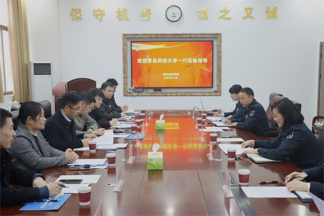 在海军指挥学院,学校一行围绕新时代国防教育提质增效,就军事理论课教学改革,军训育人、征兵育人,军事心理培育,国防体育锻炼等进行了调研学习。海军指挥学院介绍了相关情况。双方就军事职业教育赋能国防教育等进行了交流研讨,就海军指挥学院“三海文化”(“三海”即海军海权海洋)优质特色课程等资源融入人才培养,推动海军特色国防教育进行了研讨对接。