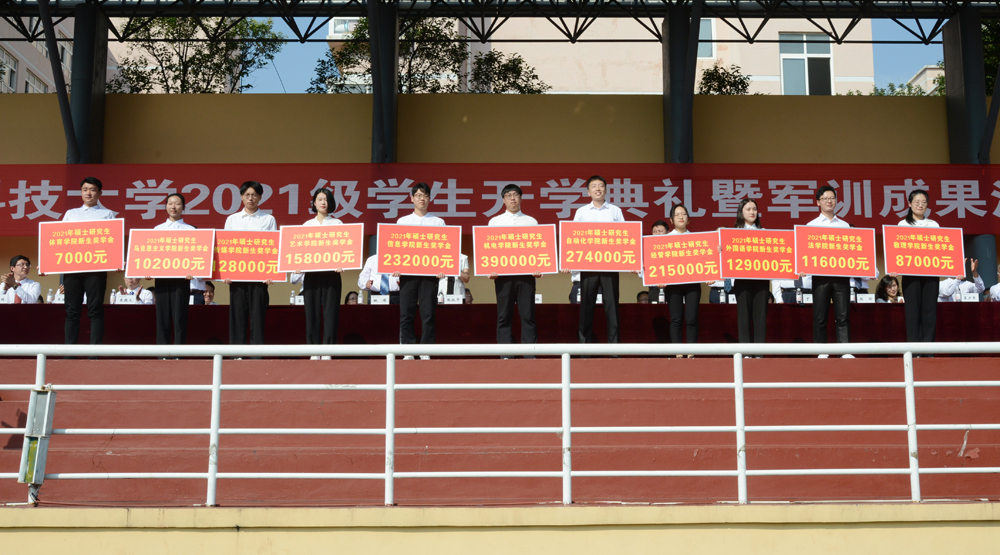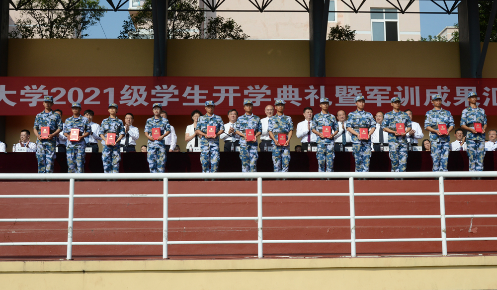 党委副书记张淑华宣读了《青岛科技大学关于表彰2021级学生军训先进集体和优秀教官的决定》《青岛科技大学关于颁发2021年研究生新生奖学金的决定》。现场为2021级学生军训先进集体和优秀教官、优秀教导员、优秀新生奖学金获得者颁发奖状、证书和奖学金。