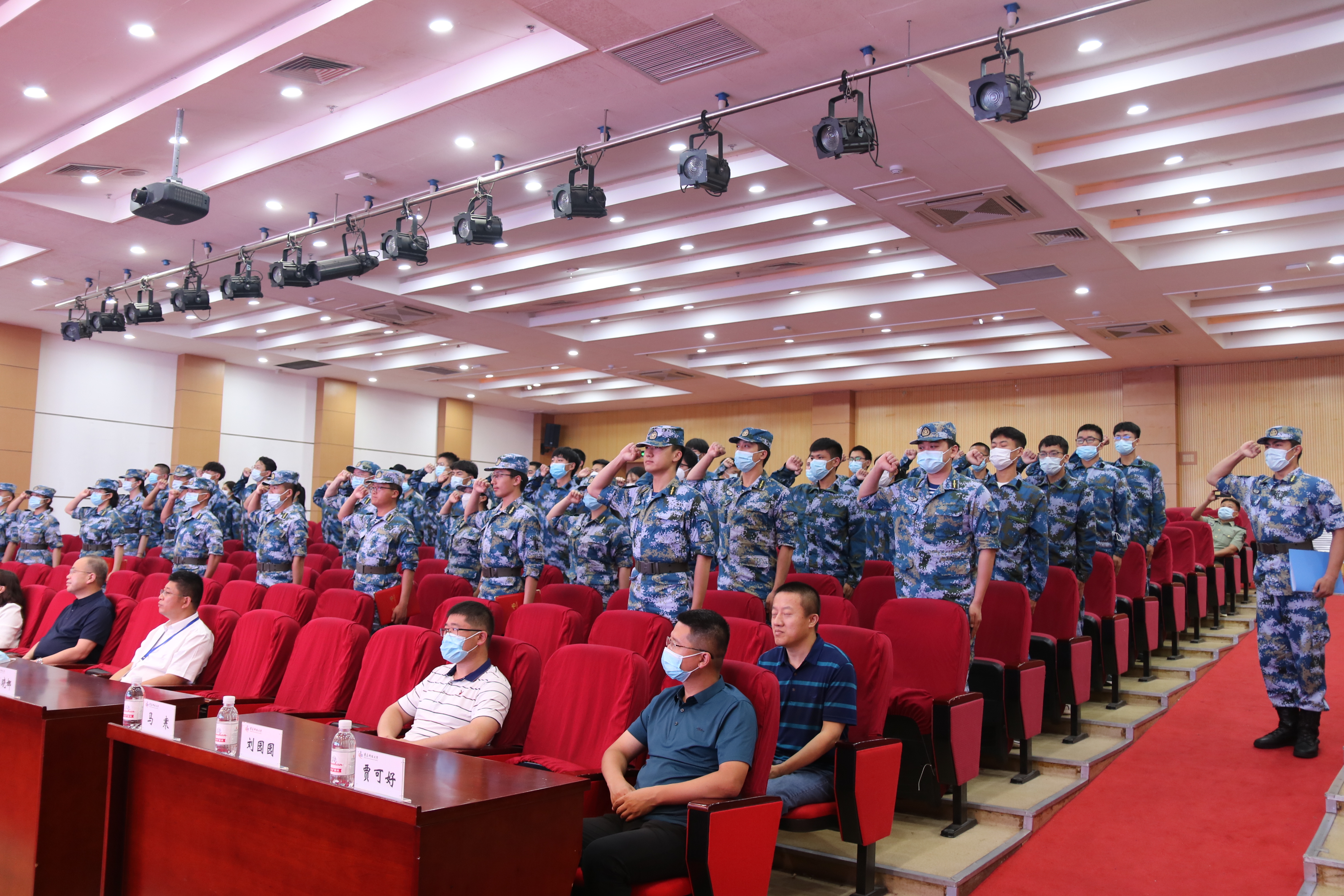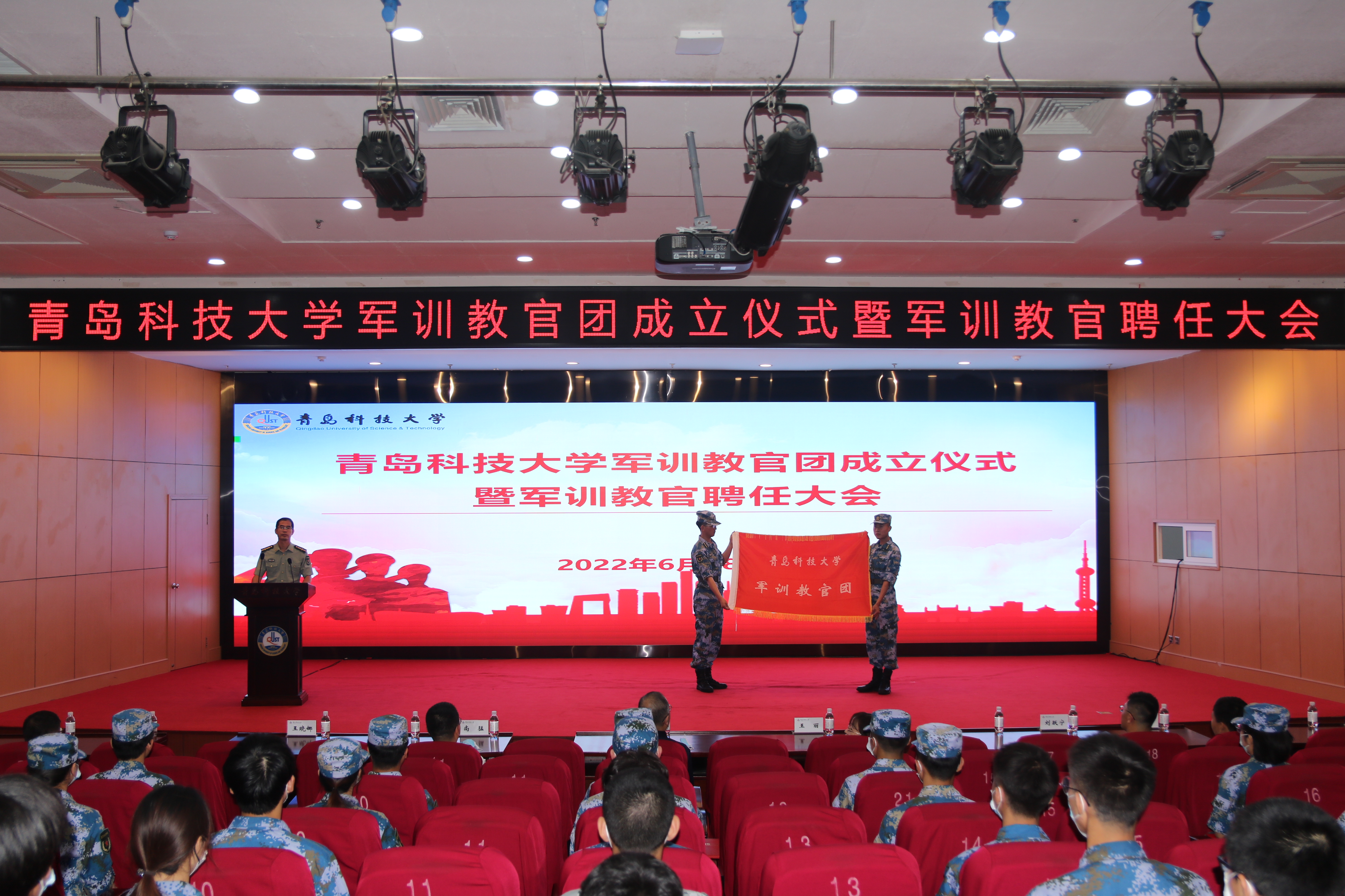 6月28日下午,青岛科技大学2022级学生军训团成立暨军训教官聘任大会在崂山校区第三报告厅举行。党委常委、副校长丁林在大会上进行了讲话并向军训团授团旗。
