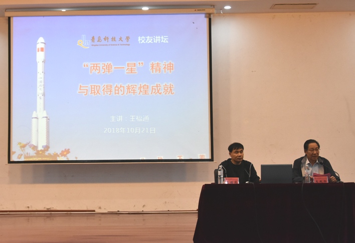 韦殿华在主持报告时表示,以王福通校友为代表的国防科技工作者们无私奉献,为祖国的国防和航天事业做出了重要贡献,是广大学子学习的榜样。希望同学们深入学习领会“热爱祖国、无私奉献,自力更生、艰苦奋斗,大力协同、勇于登攀”的“两弹一星”精神,并将“两弹一星”精神融入到学校“双一流”建设和自身的成长成才过程中,以习近平总书记在北京大学师生座谈会讲话中对广大青年提出的四点希望为目标,不断努力,自觉将个人的理想追求融入党和人民、国家和民族的事业当中,树立与时代同心同向的理想信念,勇于担当时代大任,做时代新人,做德、智、体、美、劳全面发展的社会主义合格建设者和可靠接班人。