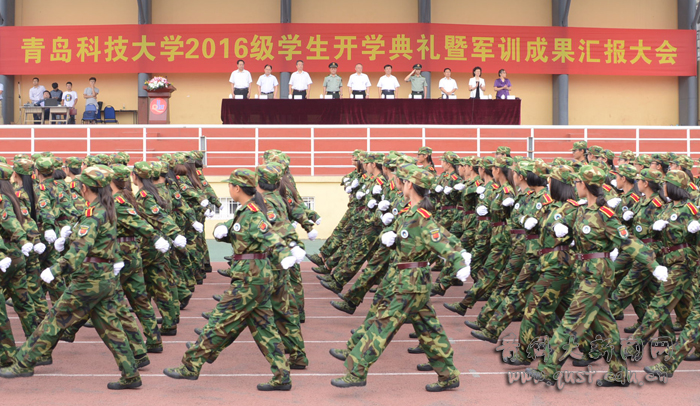 9月14日,青岛科技大学2016级新生开学典礼暨军训成果汇报大会分别在崂山、四方和高密校区举行,校领导刘兴云、马连湘、王文哲、李庆领、刘光烨、张淑华、韦殿华,青岛警备区副司令员温常升大校、青岛警备区副参谋长王清秀上校及学校相关职能部门负责人出席大会。高密校区名誉校长、高密市委领导等出席高密校区大会。开学典礼暨军训成果汇报大会由副校长张淑华主持。