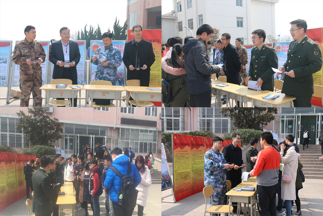 3月23上午青岛市北区武装部来我校崂山校区开设征兵工作咨询点,进行征兵宣传。学校武装部和学生处领导陪同,市北区武装部部长王维、副部长张健、政工科长夏创业、兵员参谋张枫等参加了此次征兵宣传