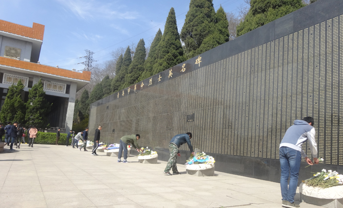 同学们向烈士献花