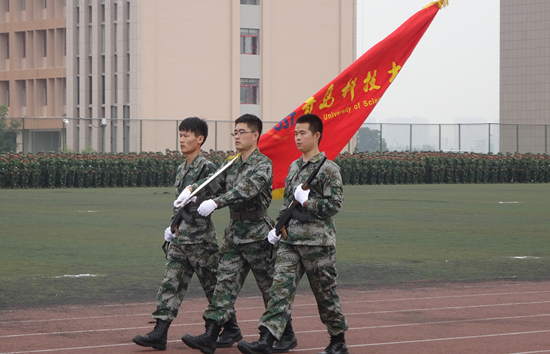 红旗飘飘,骄阳似火,15级军训新生一个个皮肤黝黑,却热情洋溢,9.18日这天上午9:30,2015级新生阅兵暨表彰大会正式拉开序幕,参加此次大会的有校党委书记高青等学校领导,承训部队教官代表,2015级全体新生。在全体教官、老师和新生的共同努力以及军事爱好者协会的协助下圆满举行。