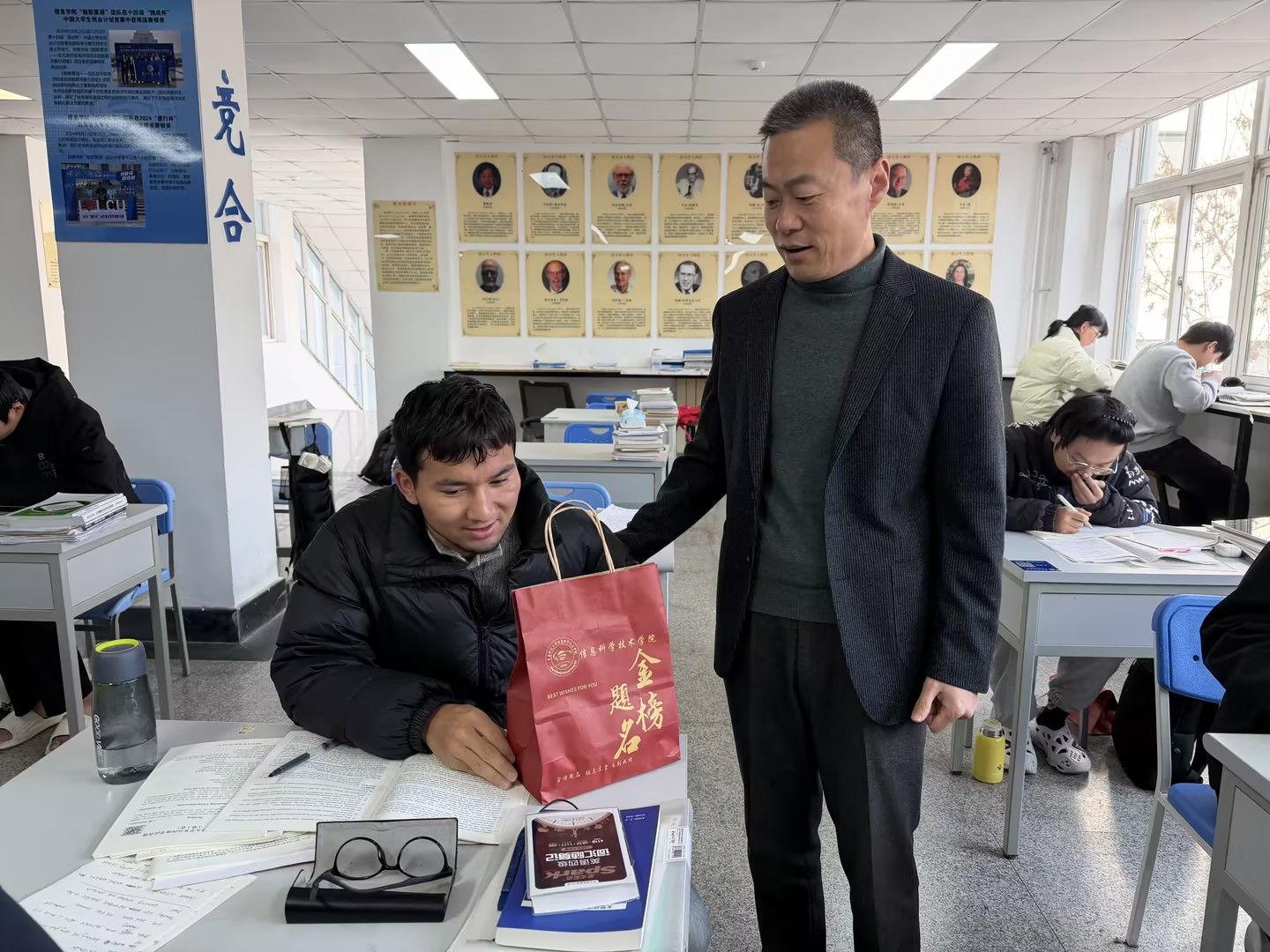 又是一年考研季,北八学生公寓中暖意融融。“现在复习进度怎么样?睡得好吗?相信自己,你可以的!”12月12日下午,信息学院党委副书记兼副院长严增兴和2026届毕业生辅导员,带着学院定制加油包走进“一站式”学生社区,为困难生送上暖心祝福,祝愿学子们长风破浪,马到成功。