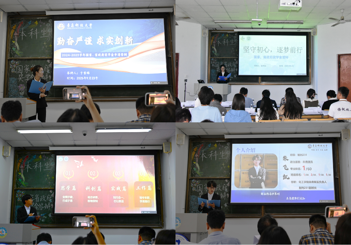 为全面贯彻落实党和国家的教育方针,激励广大学子勤奋学习、勇于创新、全面发展,化工学院于9月23日、10月10日分别举行2024-2025学年本科生国家奖学金、省政府奖学金答辩会及2025年研究生国家奖学金评审答辩会。本次答辩会旨在选拔出成绩优异、综合素质突出的学生,发挥榜样的引领示范作用。学院党政领导、各系教师代表、全体辅导员及学生代表组成评审团,全院百余名师生到场观摩学习。