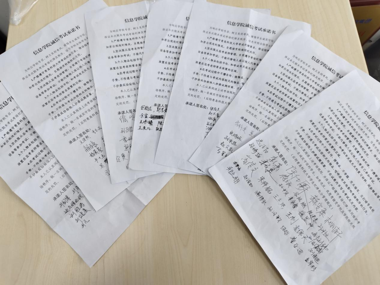 学院各班级积极开展了“学以载道,诚信为本”的主题班会,班会在一段关于诚信考试的视频短片中拉开序幕。短片通过真实案例展示了诚信考试的重要性和作弊行为的严重后果,引发了在场学生的深刻思考。同学们积极主动地签写了《信息学院诚信考试承诺书》,这一环节不仅是对学生诚信意识的一次强化,更是对他们未来行为的庄严承诺。