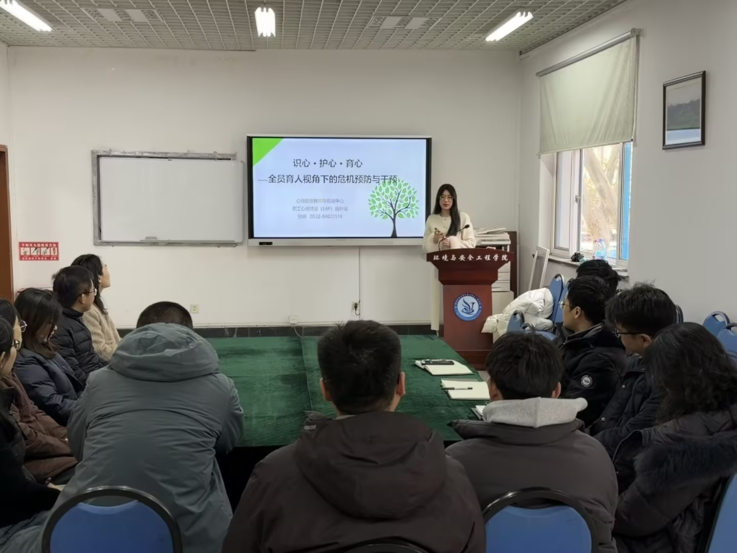 为全面提升教师队伍对学生心理问题的识别与干预能力,落实全员育人责任,12月2日下午,环境学院在环境楼3015会议室开展教师队伍心理健康工作培训会。本次培训由学校心理健康教育与咨询中心(EAP)服务站张岍主讲,各年级班主任及全体专职辅导员参加。