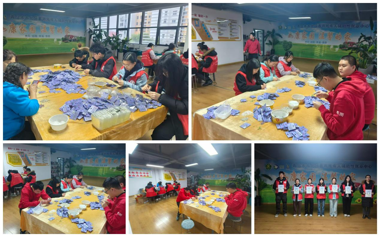 11月15日,青岛科技大学青年志愿者协会机电工程学院分会走进春雨残疾人辅助性就业中心,陪伴自闭症儿童制作耳钉。志愿者们手把手教孩子串珠、固定配件,轻声引导他们按颜色将一对对耳钉固定在纸板上。原本安静的教室,渐渐响起细碎的笑声——孩子举着完成的耳钉笑时,志愿者也看着他们染上了笑意。活动结束后,孩子们同志愿者们一起把打包好的耳钉装到箱子里,为第二天的售卖做好了准备。在此次志愿活动中,孩子们在志愿者的耐心陪伴和引导下,不仅锻炼了手眼协调能力,更在愉快的氛围中提升了社交主动性与任务专注度。