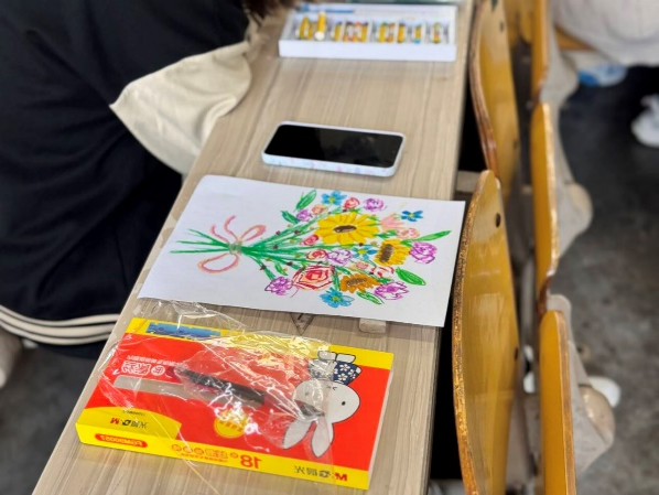 活动专门设置了绘画创作区,为同学们提供了画布、颜料、彩笔等丰富的绘画材料。在这里,没有学科的界限,没有分数的压力,只有色彩与情感的自由流淌,同学们将自己的作品送给老师们,加强了师生的情感联结。