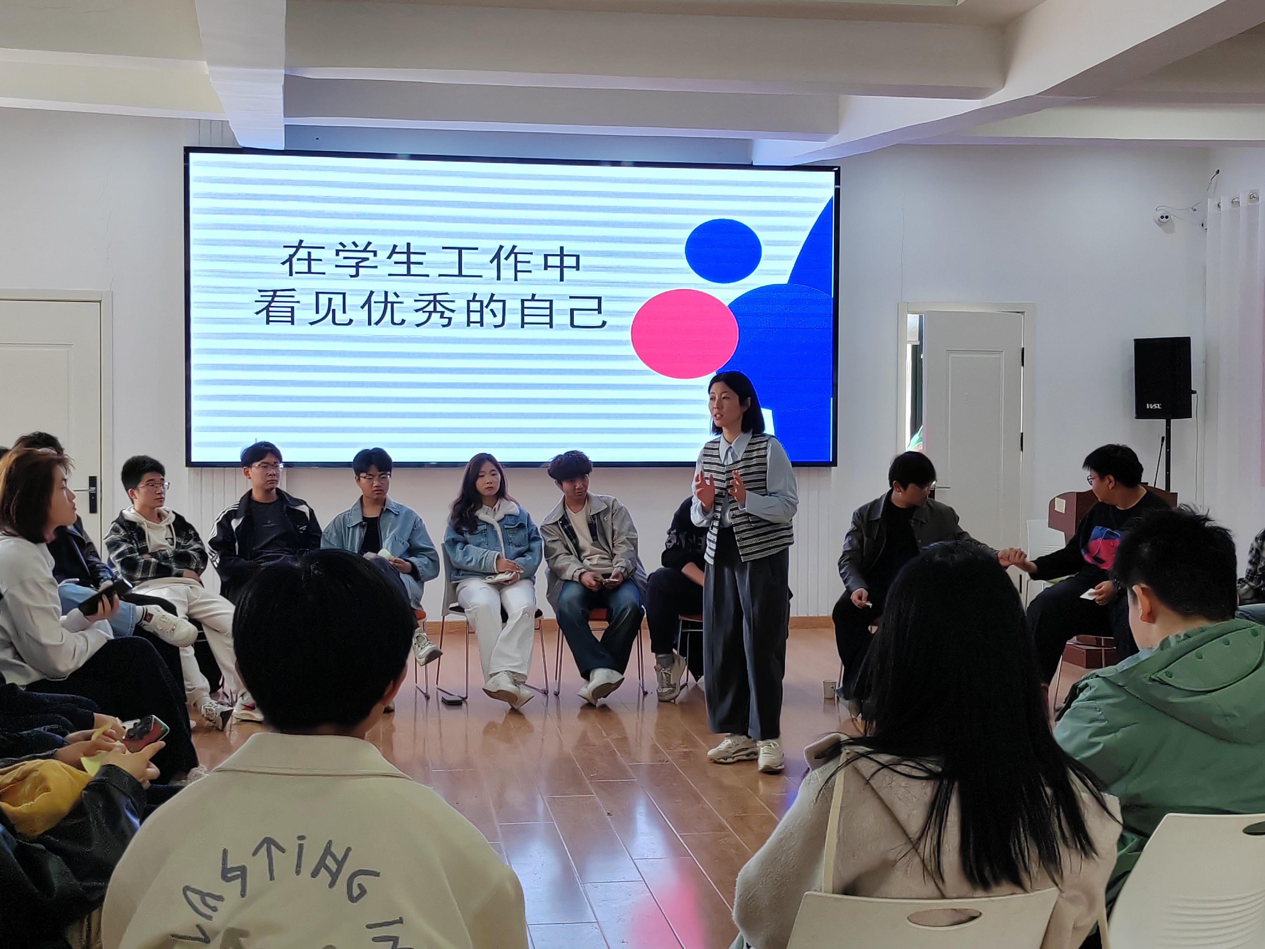 为增强学生干部的责任意识与团队凝聚力,助力学生骨干实现自我成长,4月15日,中德科技学院开展“在学生工作中,找到优秀的自己”团体辅导活动。本次活动邀请党委学生工作部心理健康教育与咨询中心副主任刘璐主讲,通过多元互动形式引导学生感悟责任、分享成长,进一步强化班级建设的核心力量。