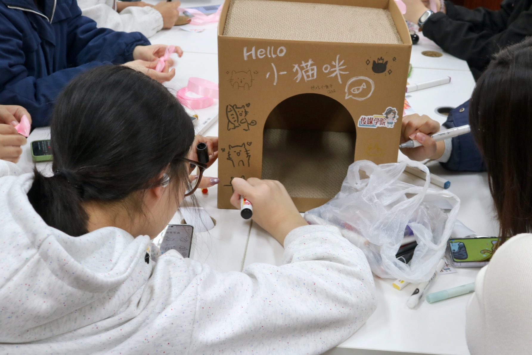 3月23日下午,传媒学院在310会议室举行“春潮涌动,关爱同行”——校园流浪动物守护活动。在校园的各个角落,都会出现“毛孩子”的身影,为我们的学习生活增添一丝乐趣。志愿者们在校园各处寻找猫咪身影并拍摄不同的猫咪图片,结合猫咪的颜色、体型等特点定制设计出独一无二的猫窝,为流浪动物奉献爱心。志愿者们将这些温暖舒适的猫窝放置在猫咪经常出没的地方,用自己的实际行动为流浪动物提供了一个温暖的避风港。