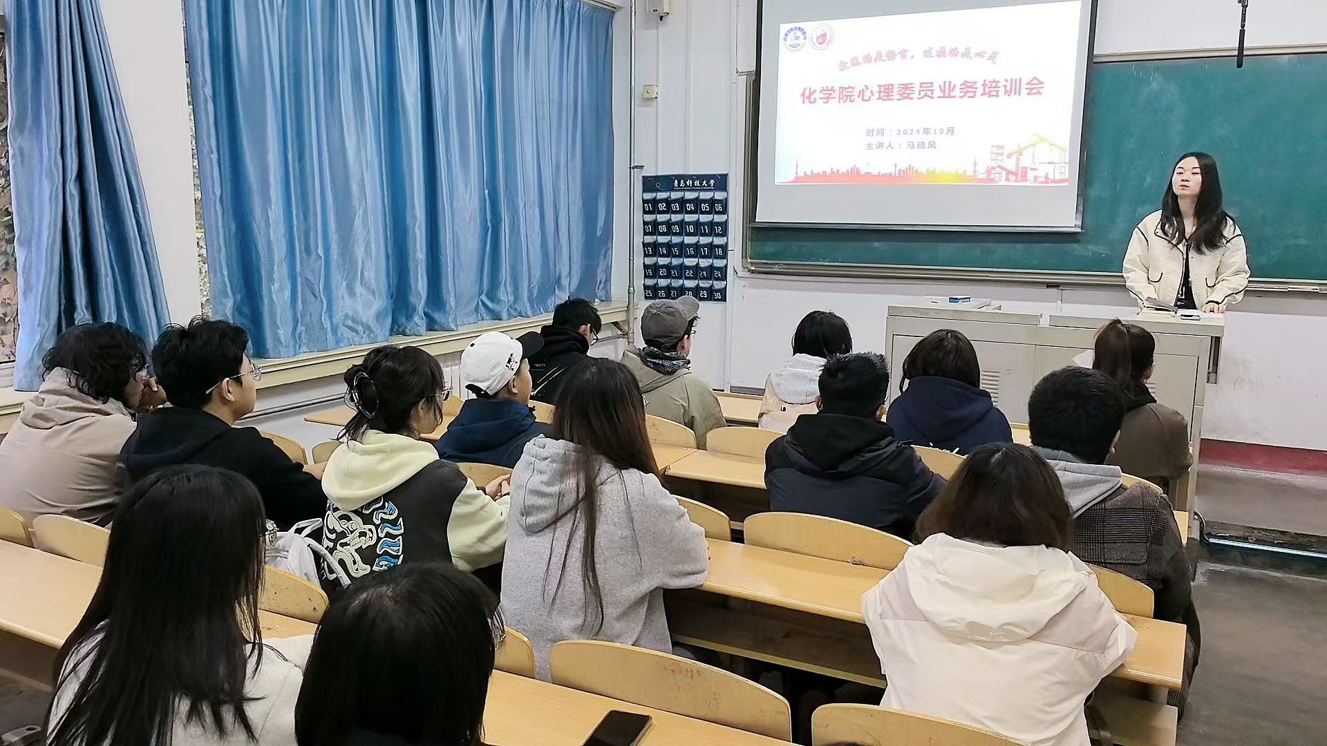 化学院心理工作站面学院2024级本科生、研究生和其他年级新上任的心理委员开展心理委员培训会,学院心理工作站站长马晓风结合以往活动,从心理健康常识、心理委员的基本职责与义务、化学院心理工作站的建设工作等方面开展培训。