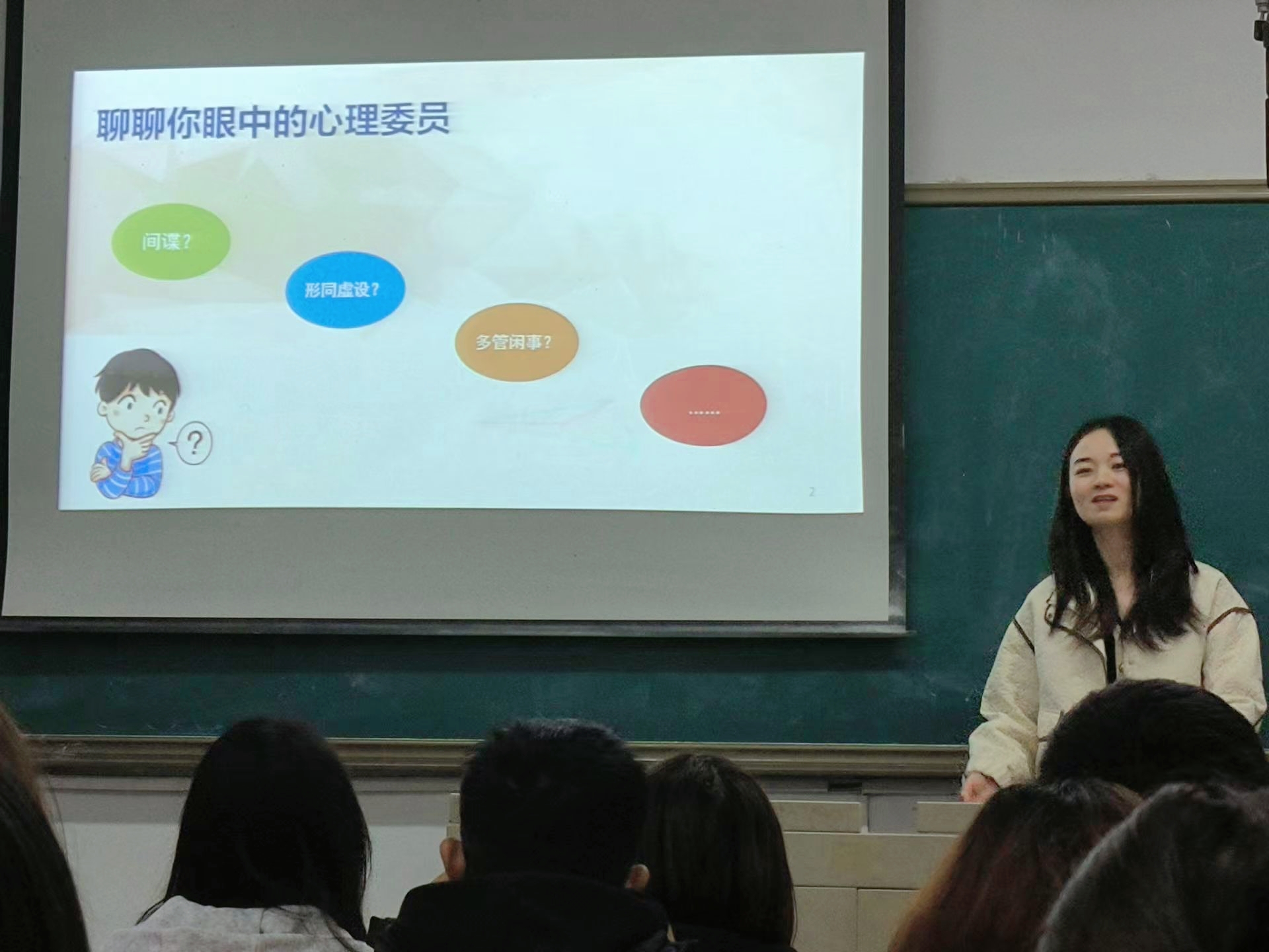 本次培训主要从三个方面进行,分别是心理委员的职责、工作技巧和基础心理知识。马晓风具体介绍了心理委员的主要职责,分别是了解报告、活动开展、宣传推广,着重强调了心理委员工作职责的保密性。她指出,心理委员不仅是同学们心理问题的倾听者和支持者,更是学院心理健康教育的重要力量。心理委员们需要具备一定的专业知识,掌握有效的沟通技巧,能够及时发现并上报潜在的心理问题,为学院的心理健康教育工作提供有力的支持。