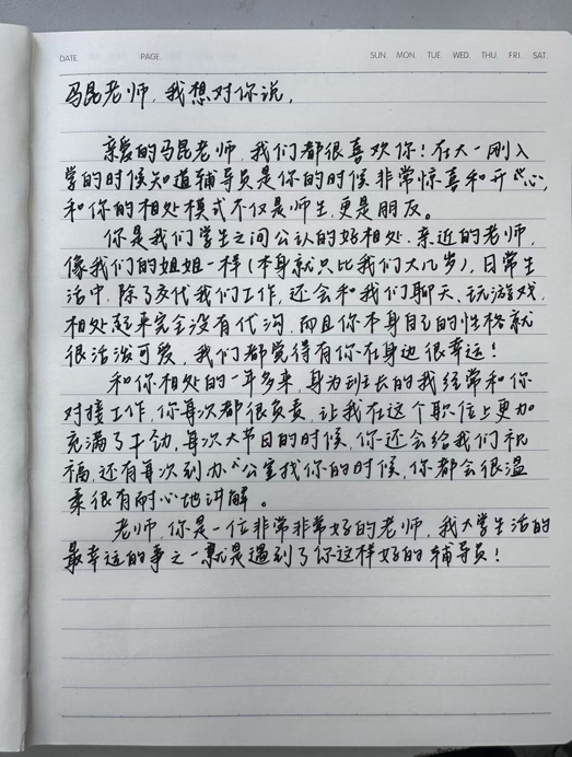 在10月25日,外国语学院成功举办了以“师爱我”为主题的书信活动。本次活动通过征集投稿的形式,为师生们提供了一个展示才华与情感的舞台。作品不仅展示了同学们的写作能力与情感表达能力,更让老师们看到了学生们内心深处的真实想法与感受。增进师生之间的情感联系,让师生在忙碌的学习生活中找到心灵的慰藉。