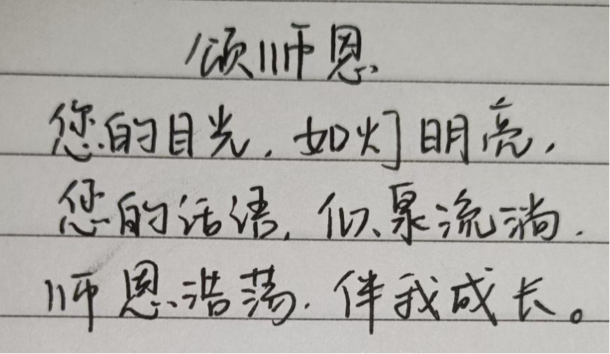 学院组织开展“师恩难忘·三行情诗”活动,在本次活动中,每一位同学通过创作“三行诗”的形式,向老师表达最真挚的感恩与祝福,展现师生温情记忆的点点滴滴,让老师们看到了更多学生的心里话与心底情。