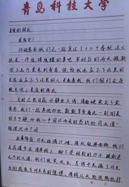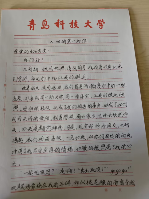 活动的核心形式是通过手写书信来增进同学们之间的了解与友谊。鼓励每位同学利用青岛科技大学特制的信纸,亲手书写下与朋友们共同度过的快乐时光、那些难忘的瞬间,或者是对朋友倾诉的贴心话语。此外,参与者还需附上一张与朋友出游时的照片,这样的图文并茂的方式不仅能唤起大家的美好回忆,还能让情感的表达更加真挚和深刻。