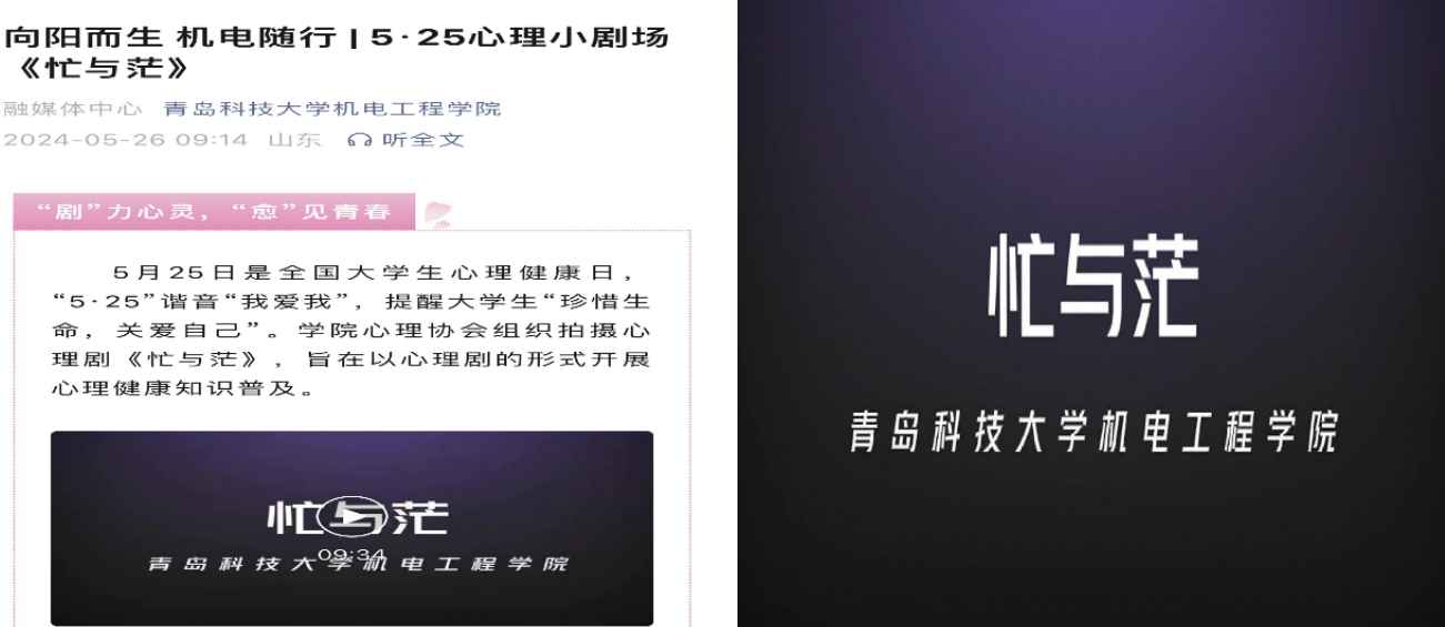 为缓解大学生紧张、焦虑、自卑等消极情绪,帮助学生突破精神内耗的自我成长与心灵的蜕变,机电工程学院心理协会拍摄、制作心理剧,采用心理剧展演这一富有趣味性和代入感的形式,普及心理健康教育知识。