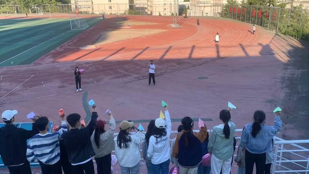 同学们将自己的烦恼和压力写在纸上,标注属于自己的标志,然后折成纸飞机放飞。随着纸飞机在空中翱翔,同学们的负面情绪也随之消散。这一环节让同学们学会了如何以一种积极的方式面对和处理压力,还通过富有创意和象征意义的方式促进了他们的心理健康和积极心态的培养。