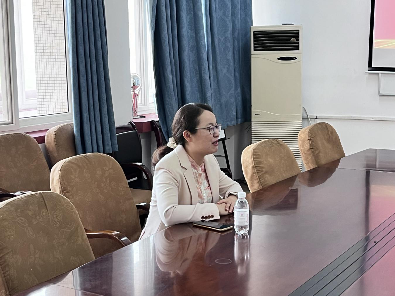 孟照国对刘敏的到来表示欢迎,就学院心理健康工作情况进行介绍,分享学院心理工作经验,并对学院辅导员老师开展心理工作做出几点具体要求:一、恪守工作底线,保障学生身心健康;二、坚守育人原则,育心育德相结合;三、严守育人阵地,提升心理育人成效。刘敏分享了以前在心理工作中的实效性经验与做法,表示会协助学院辅导员老师做好心理育人工作,积极开展心理危机排查与干预。