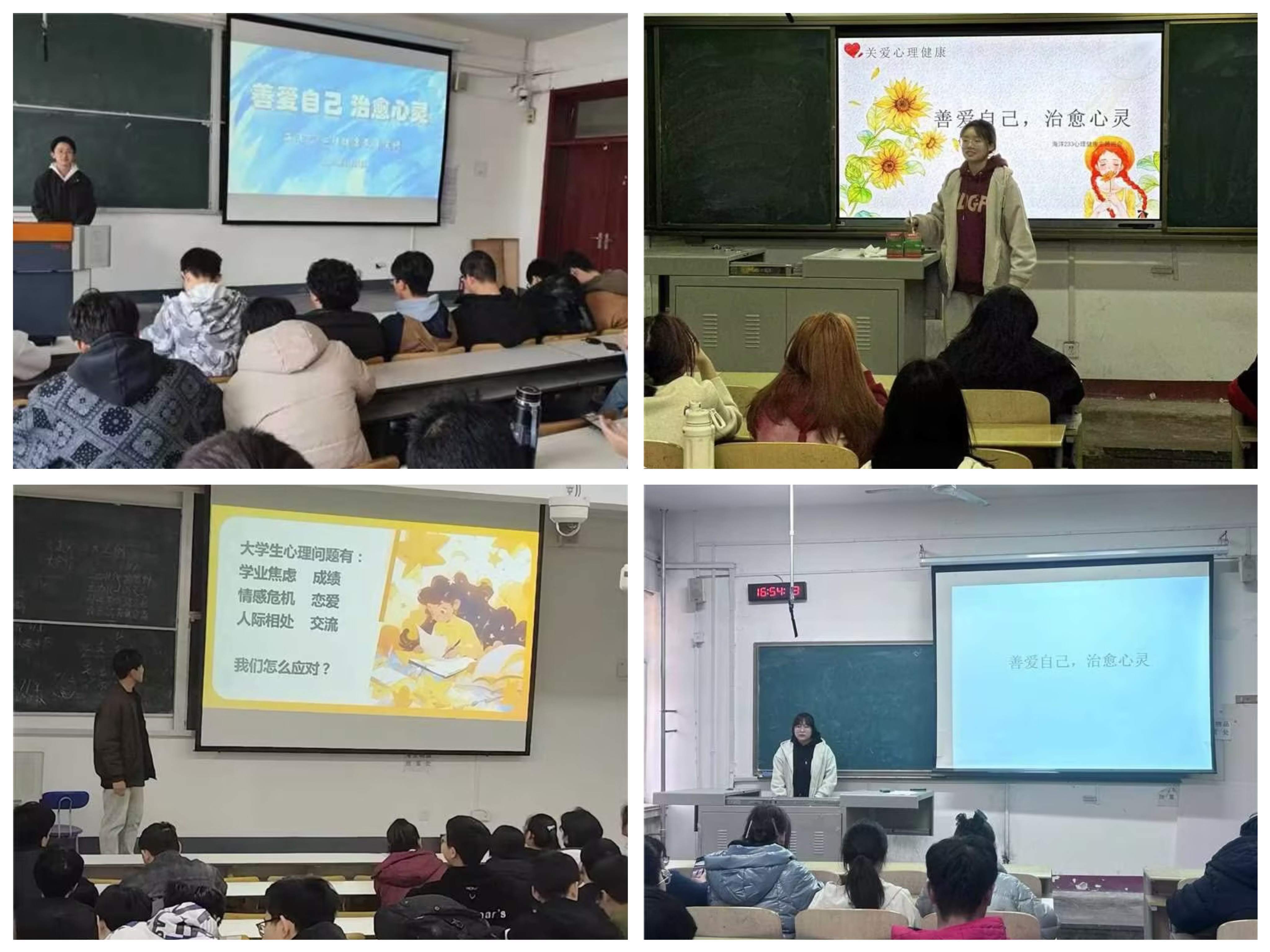 学院组织各年级以班级为单位召开心理班会,由班级心音使者作为主讲人,通过共学“心理健康开学第一课”,宣传心理知识,帮助学生树立科学的心理健康意识,感悟生命价值,培养积极心态。