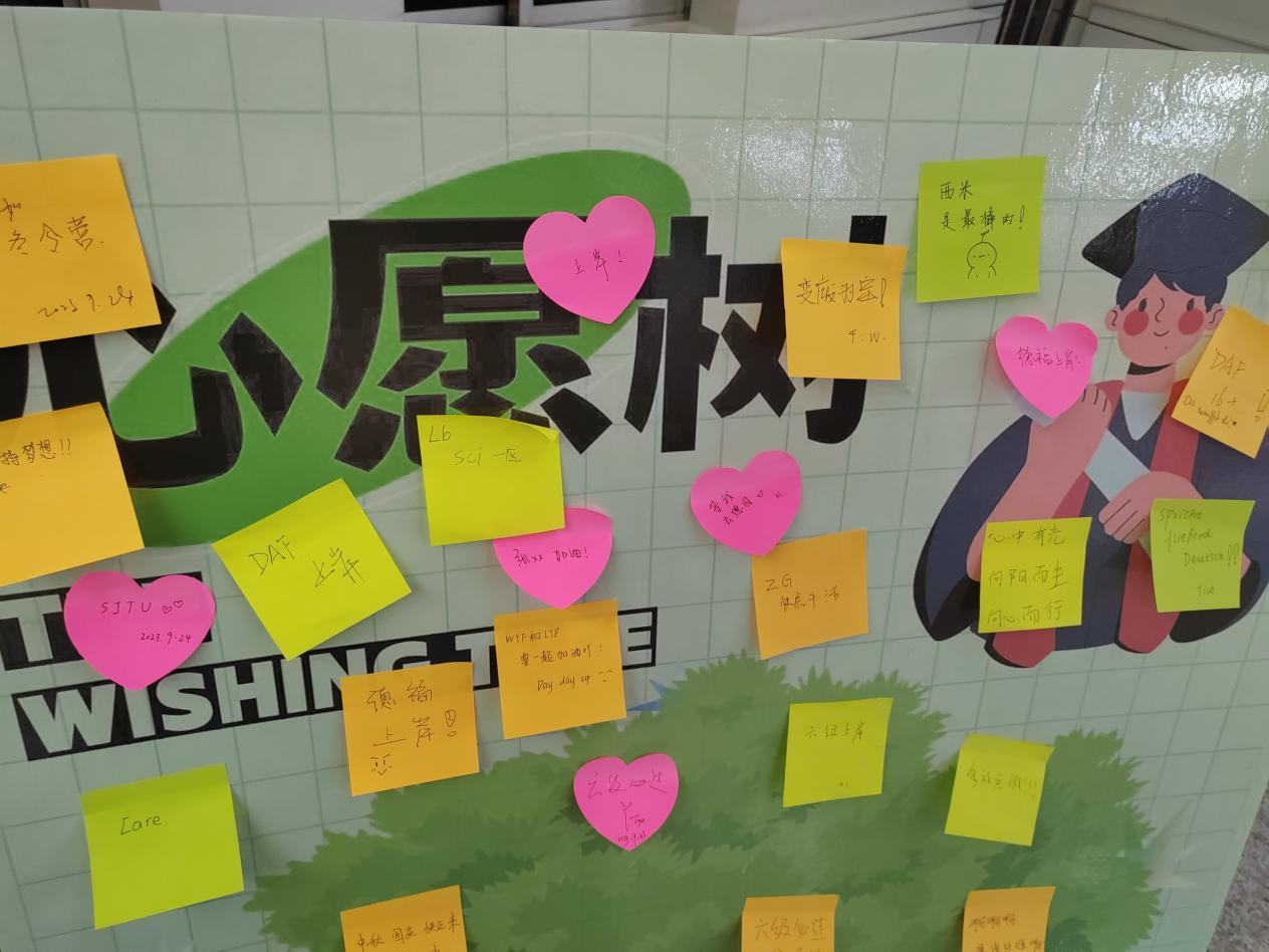 心愿墙上贴了许多同学们的愿望、理想及困惑。大家倾诉对学习和日常生活的烦恼,留下对自己、对大学的美好期望,同学们在参与活动中释放学习压力,并学会在生活中寻找乐趣,学会处理、改善人际关系,更好地适应大学学习和生活节奏,用积极健康的情绪和心理状态面对生活。