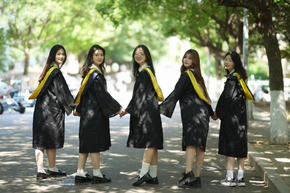 毕业生学长学姐在校园中打卡拍照,与相伴四年的校园依依惜别,同时留下对学弟学妹的寄语。这是一个感性与理性相融的瞬间,是一个告别与新生的时刻。学长学姐们分享大学四年的收获和经验,发挥朋辈典型引领的优势,激励在校同学立志高远,脚踏实地,静专思学,珍惜时光。