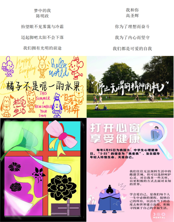 三行诗和心理健康宣传图片征集为学子们提供了一个表达自我通道,让每一位同学都能够以简短的三行诗或者优秀图片的方式来抒发自己心理感悟,提醒同学们关注自我,保持健康的心理状况,积极地表达自我。