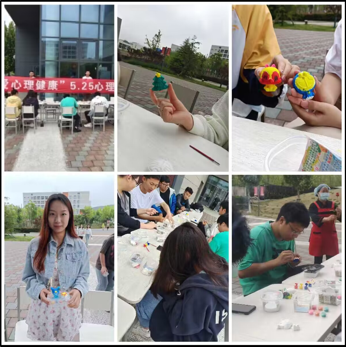 5月27日下午,社团管理部于教学楼连廊及前方空地处开展了“用笑容做密码,为心灵解压”DIY彩绘涂鸦活动。同学们用自己的笑容照片解锁手工涂鸦,拿起画笔蘸上颜料,用色彩释放自己的情绪。随着活动的进行,桌面上的娃娃也渐渐的由纯白变得丰富多彩,各式各样的涂鸦娃娃也正是自由挥发心中所思所想的学子。通过这种非语言表达的方式,直达潜意识,帮助学生释放压力,疏解情绪,达成疗愈。