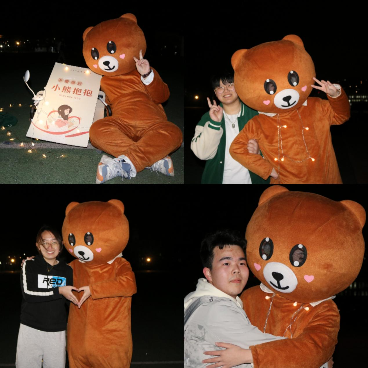 “不要难过,小熊抱抱”主题活动中,同学们与穿着小熊套装的志愿者相互拥抱,彼此传递温暖,释放压力,在活动中实现自我调控,有效促进学生心理健康成长。