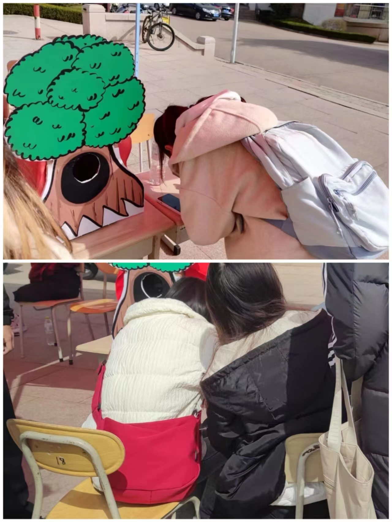 第二个活动——情绪树洞。本次活动采取匿名倾诉法,让同学们将自己的烦恼、愿望、对他人的祝福等丢入树洞中,以此丢掉自己的烦恼,祝愿自己的心愿,书写对他人的祝福等,以此让同学们对未来充满希望。