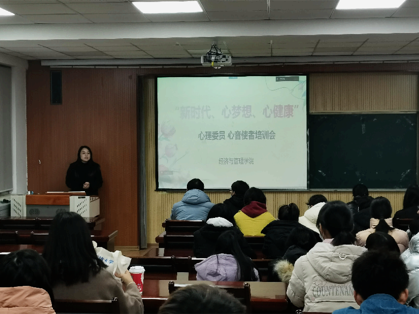 为完善经管学院心理健康服务网络建设,充分发挥朋辈大学生群体自助、助人的功能,进一步加强心理健康教育工作,全面了解大学生心理健康状况,12月6日下午,经管学院于经管楼419组织开展了“新时代、心梦想、心健康”2022级心理委员培训会,培训会由学院心理工作站站长付凯主讲,2022级心理委员以及心音使者参加了此次培训会。