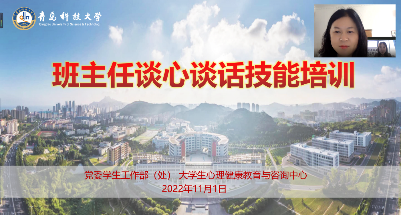 为切实加强高校思想政治工作体系建设,进一步提升心理育人质量,为学生提供经常、及时、有效的心理健康指导,营造全员育人的良好氛围,11月1日下午,学校邀请青岛农业大学心理中心主任张利萍教授为全体班主任开展谈心谈话技能培训。学校心理健康教育与咨询中心主任李海玲主持培训会,各学院、校区班主任1000余人参加本次培训会。