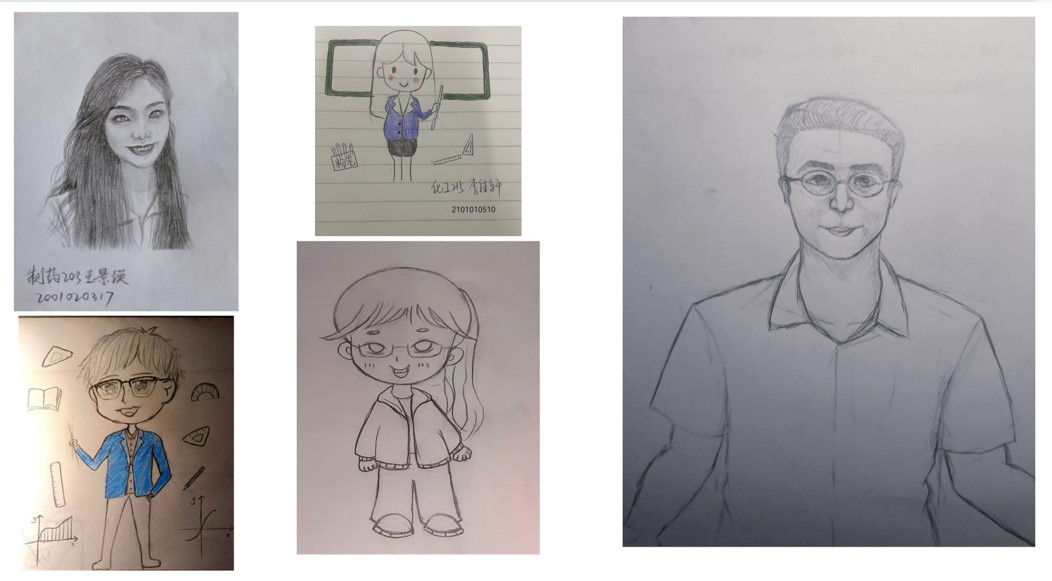执笔画像,牢记师恩。同学们在“笔绘画像,心递感恩”活动,将自己心目中老师的模样用笔画在了纸上,近老师和学生之间的距离使老师与学生之间的关系更加密切。