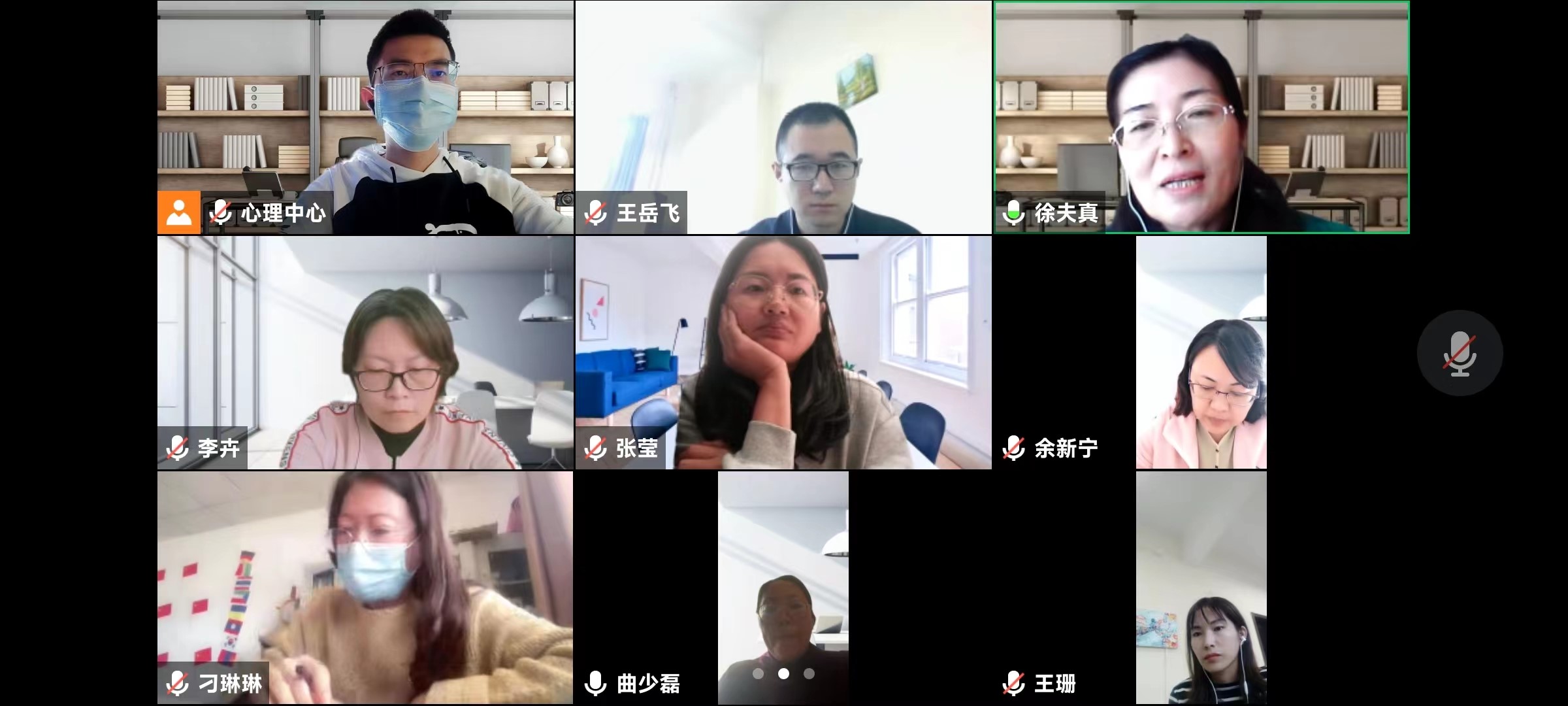 为进一步提高我校心理咨询师的专业素养和咨询能力,做好学生的咨询服务工作,20221013日,心理中心召开第十八期咨询师月享会,本次月享会邀请了山东师范大学徐夫真教授做线上个案督导,心理中心王岳飞老师主持会议,专兼职咨询师11人参加了此次会议。