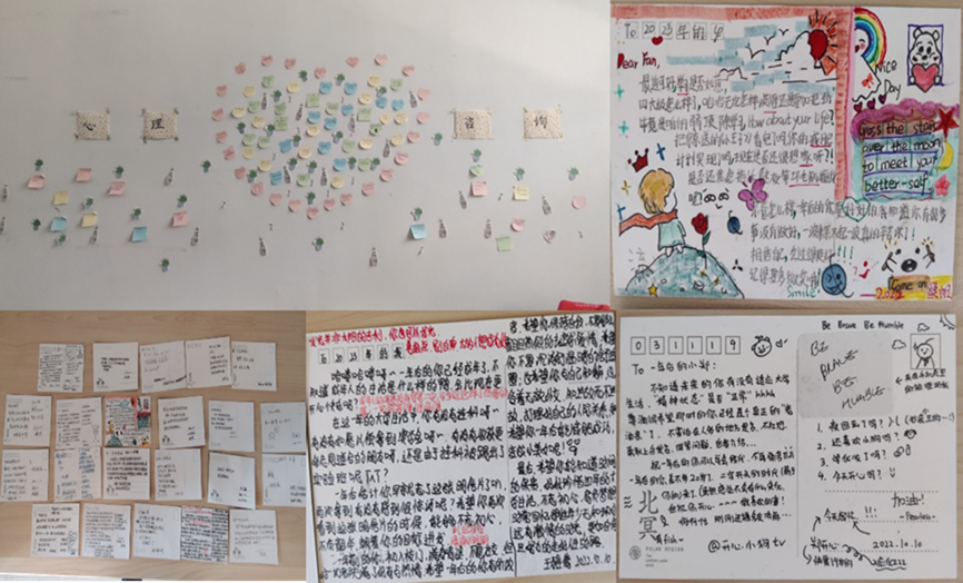 凝聚师生力量,护航健康成长  学院心理健康协会在心理咨询室面向全体师生开展了便签留言活动,通过便签留言的形式,我院师生分享心理健康的知识,共同携手建设和谐校园;同时,学生通过“笔尖描绘精彩未来”,以给未来一年的自己写封信的形式,写下自己对未来的憧憬,鼓励自己继续前进,不负青春韶华,与梦想同行。