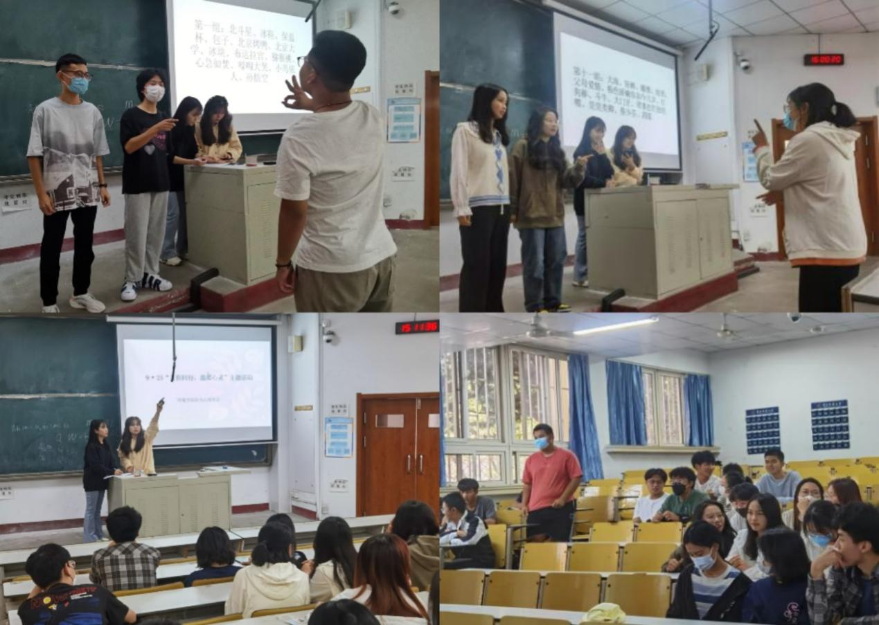 室内活动以“心有灵犀,你划我猜”和只言片语寻找“曲”为主要形式,活动以幽默风趣的游戏形式,让学生们更加了解自己,认识他人,放松身心,充实生活。来自不同班级的同学充分发挥想象力,培养了朋友之间的默契程度,增进了彼此的友谊。