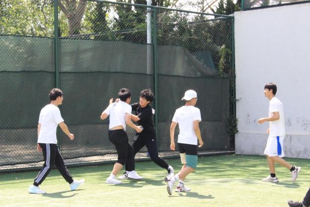 在学院楼和网球场进行的“抓住当‘夏’”趣味运动会以“寻找我的画”开始,同学们通过自我感觉寻找自己闭眼时所做的画,大部分同学成功在多张画中寻找到了自己的画,不仅收获了游戏成功的快乐也更加了解自我,认可自我。在同伴协助走出迷阵中,一组和二组同学积极配合,用极快的速度协助同伴走出了迷阵,回到了队伍之中,将信任给予团队的同时,大家都在团队协作中成为了更好的自己。在最后的撕名牌大战中,同学们齐心协力找到了“卧底”坏情绪,并成功将坏情绪“消灭”,在撕掉坏情绪名牌的同时也“撕掉”了自己内心的坏情绪。